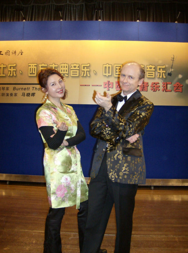 Ma Xiaohui and Burnett Thompson began their collaboration in 1999, hosted by the Kennedy Center for the Performing Arts. After a long hiatus, they returned to the Kennedy Center in 2006, followed by dozens of concerts and lectures in Vancouver, B.C., Washington, DC, Shanghai, and Chengdu, capital of Sichuan province. On Jan. 12, 2007 they appeared live on China Television on a worldwide broadcast. The Shanghai Oriental Arts Center presented two concerts by the duo in January of 2008. Their repertoire includes classical and traditional Chinese music, European classics, jazz and tango. They bring a truly original perspective to a broad view of music today.